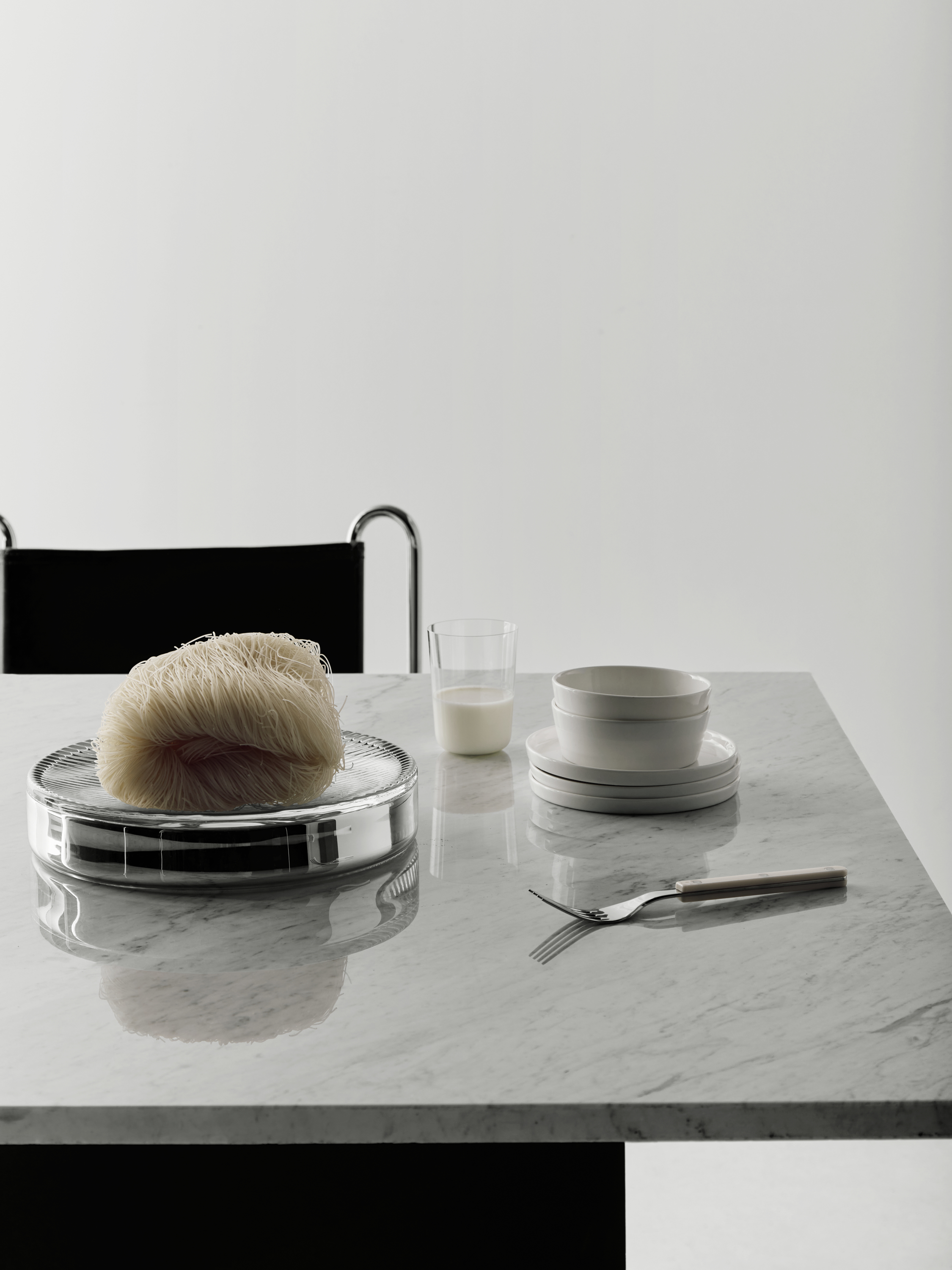 Array från Orrefors omfattar tre kombinationer av skål och fat, var och en med ett unikt uttryck. Delarnas olika höjd och storlek erbjuder variation och praktiskt värde, och gör dem lämpliga för en mängd olika användningsområden – från att lägga frukt eller grönsaker i till att tjäna som rena dekorationsföremål. Design av Mattias Stenberg.