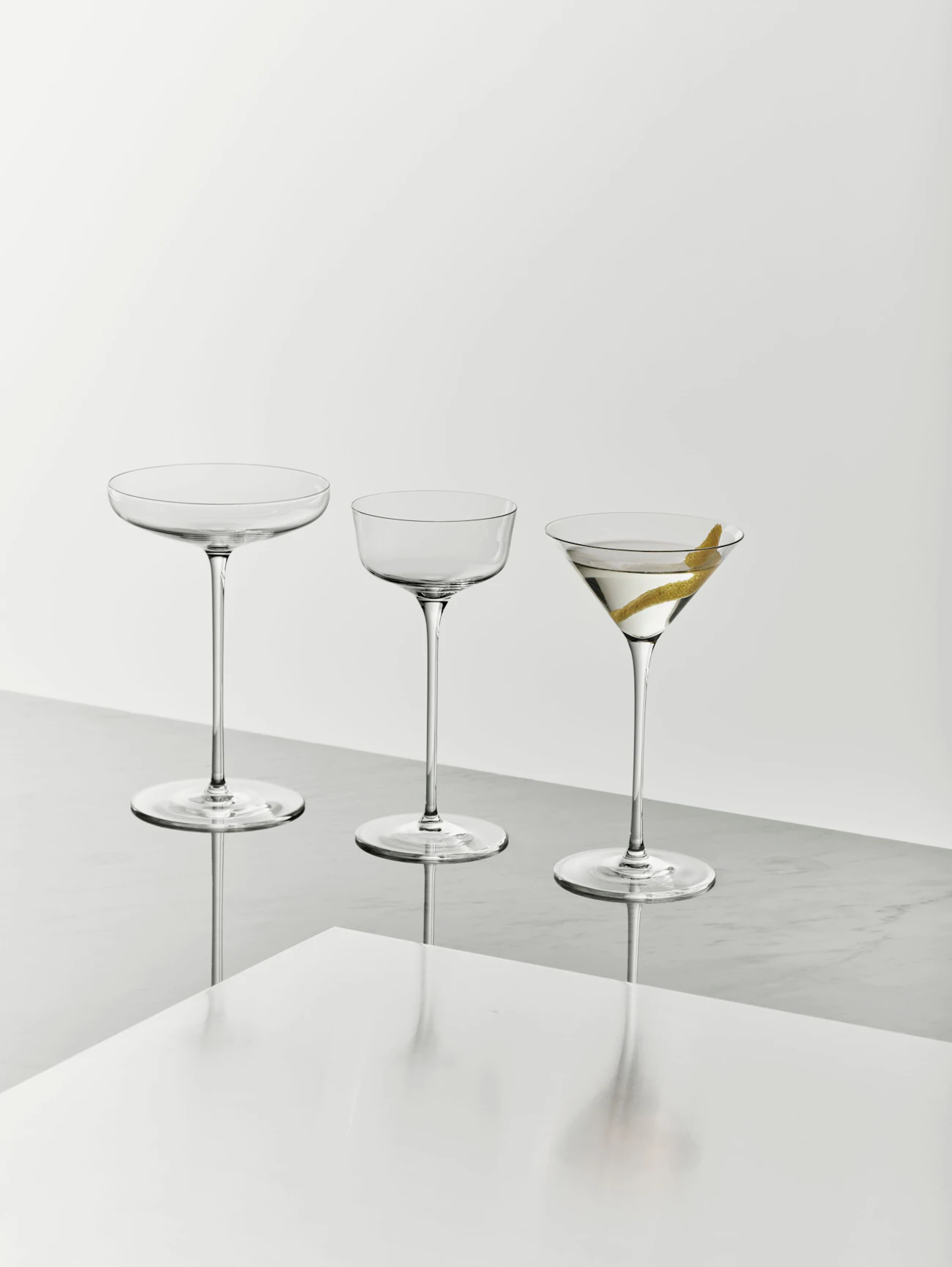 Martini glaset rymmer 13cl and lämpar sig väl för kylda rörda och skakade cocktails såsom Dry Martini, Espresso Martini, Cosmopolitan och Vodka Martini.